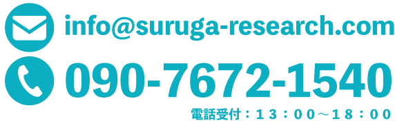 TEL:090-7672-1540、もしくはメール:info@suruga-research.comにてお気軽にお問い合わせください。